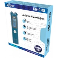 Ritmix RR-145 – цифровой диктофон в компактном металлическом Hi-Tech корпусе с информативным матричным дисплеем. Модель оснащена двумя встроенными высокочувствительными микрофонами для записи естественного стереозвука. Поддерживает различные настройки качества и режимов записи, а также имеет функцию музыкального плеера.Диктофон интуитивно понятен в управлении, запись начинается нажатием всего одной кнопки либо при помощи голосовой активации, форматы не требуют конвертации, а запись автоматически сохраненяется при низком заряде батареи.
