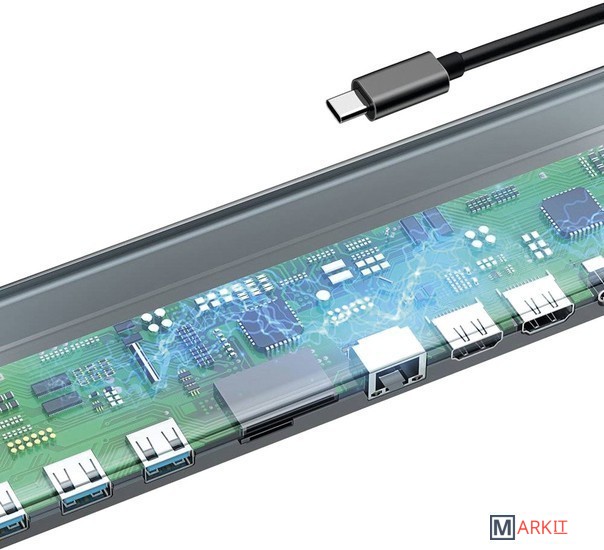 сквозная зарядка устройства, LAN-адаптер, подключение внешнего монитора |