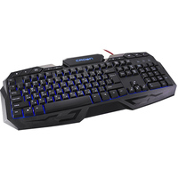 Игровая клавиатура с подсветкой;. Корпус утяжелен металлической; пластиной;, что препятствует смещению клавиатуры в самые ответственные игровые моменты. Светодиодная подсветка клавиш выделяет яркий дизайн и позволяет использовать клавиатуру при недостаточном освещении.
