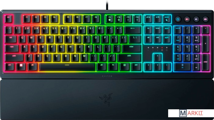 Сделайте первый шаг к производительности следующего уровня с Razer Ornata V3 X — низкопрофильной эргономичной игровой клавиатурой, разработанной для того, чтобы поднять вашу работу и игру на новый уровень. Благодаря новому ультратонкому форм-фактору, более прочным колпачкам клавиш и подсветке Razer Chroma RGB, эта клавиатура является идеальным представлением нашего несправедливого преимущества.Благодаря более тонким клавишным колпачкам и более коротким переключателям вы сможете пользоваться клавиатурой часами напролет без напряжения в суставах.Благодаря щелкающим механическим переключателям и привычным тактильным свойствам, характерным для традиционной клавиатуры, каждое нажатие клавиши будет и приятным, и точным.Клавишные колпачки этой клавиатуры долговечнее обычных, UV-покрытие обеспечивает устойчивость надписей к истиранию и защищает клавиши от износа при частом использовании.Настройте их на паузу, воспроизведение, пропуск и изменение любого параметра — от яркости до громкости. Эта клавиатура создана для удобства и полного наслаждения любимыми развлечениями.Подставка под запястья легко примагничивается к клавиатуре, а ее покрытие «софт-тач» обеспечивает достаточный комфорт и хорошо поддерживает ваши запястья, что особенно важно при продолжительном использовании.Благодаря 16,8 млн цветовых оттенков и целому набору эффектов вы можете настроить клавиатуру в соответствии со своими предпочтениями и получить доступ к динамическим эффектам подсветки для сотен игр с поддержкой Chroma.