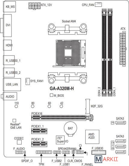 Markit » Материнские платы » Материнская плата Gigabyte GA-A320M-H (rev. 2.0)