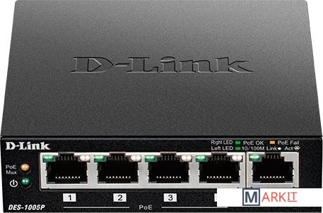 Markit » Коммутаторы » Неуправляемый коммутатор D-Link DES-1005P/B1A