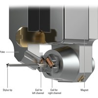 Флагманский картридж с подвижной катушкой. Двойная подвижная катушка выровнена в форме перевернутой буквы V, что обеспечивает высокое разделение и широкий отклик для четкой локализации звука и минимальных искажений. Специальная заточка иглы позволяет извлечь максимально возможное количество информации из канавки виниловой пластинки, обеспечивая очень низкий уровень искажений и значительно повышая верхнюю границу частотного диапазона.